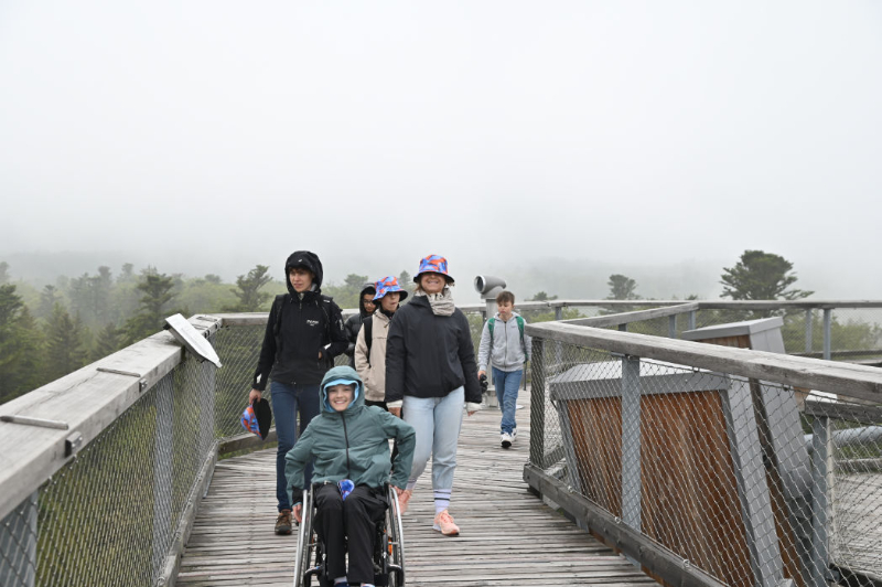 Der Samstag war unser Ausflugstag. Mit dem Bus fuhren wir nach Bad Wildbad, wo wir mit der Standseilbahn steil bergauf fuhren und oben angekommen den Baumwipfelpfad erkundigten. Bevor der große Regen einsetzte, erreichten wir die Skihütte, in der wir mit einem leckeren Mittagessen verwöhnt wurden. Gestärkt machten wir uns auf den Weg zu unserem zweiten Ausflugsziel: Zu der Black Forest Flyline nach Schömberg.