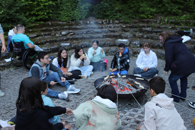 Unser erster Urlaubstag verlief spielerisch: nachdem wir unsere Zimmer bezogen hatten, lernten wir im Hausspiel unser Urlaubs Domizil kennen und nachmittags eroberten wir beim Geländespiel die Umgebung. Ziel dieses Spiels war es, den verschwundenen Schlüssel für die Schatzkiste wiederzuerlangen. In der Schatzkiste fanden wir die Zutaten für unser Abendprogramm: Liederbücher und Marshmallows. Was wir wohl an dem Abend gemacht haben?