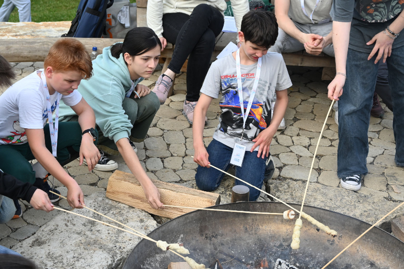 Für die älteren Kinder wurde danach noch eine Fackelwanderung angeboten. Der Weg führte durch den dunklen Wald hinauf zur Burg, wo die Teilnehmer*innen bei Musik, Gesprächen und Snacks den Abend ausklingen ließen.